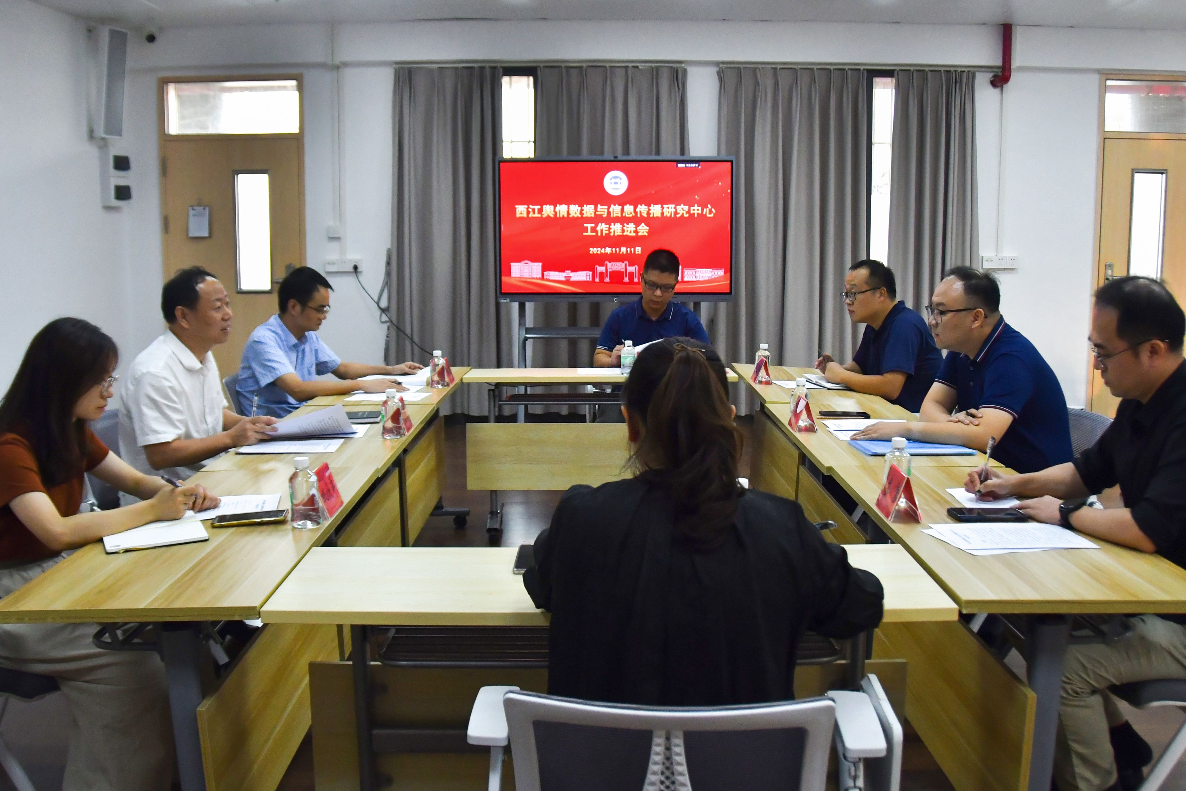 本网讯 11月11日,肇庆市委网信办副主任段建新率队赴学校融媒体中心就共建智库“西江舆情数据与信息传播研究中心”的深度合作开展调研。校党委委员、宣传统战部部长陈前出席座谈会,文学与传媒学院、计算机科学与软件学院、现代教育技术中心等相关负责人参会。