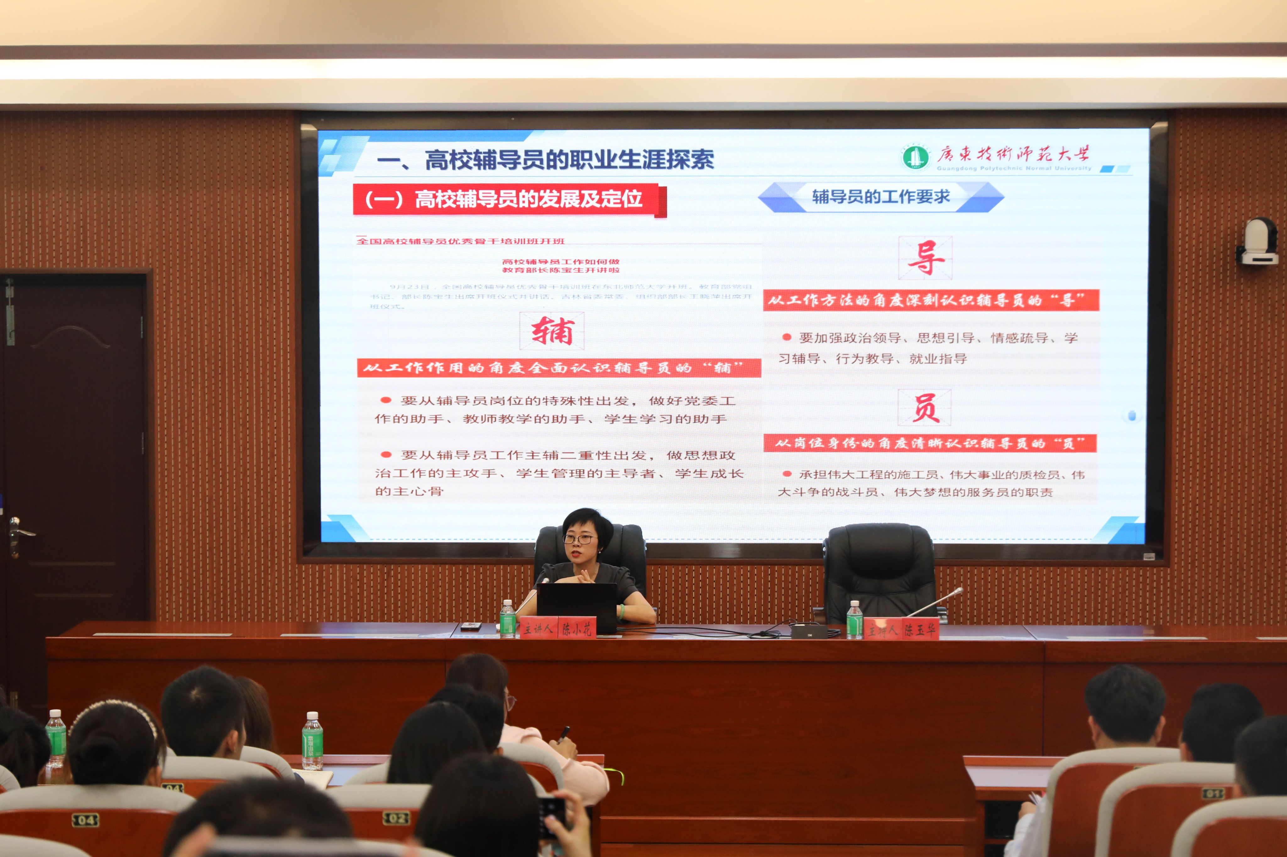 本网讯 为进一步加强bat365学生工作队伍建设,提高学生工作队伍的理论水平、职业能力和职业规划水平,不断提升大学生思想政治工作质量,11月12日,“全国最美辅导员”广东技术师范大学网络空间安全学院党委书记陈小花教授为bat365学生工作队伍做专题讲座。校党委副书记欧洪湛出席讲座,各二级学院党委副书记、全体辅导员、学生工作部全体人员参加培训。培训由学生工作部部长陈玉华主持。