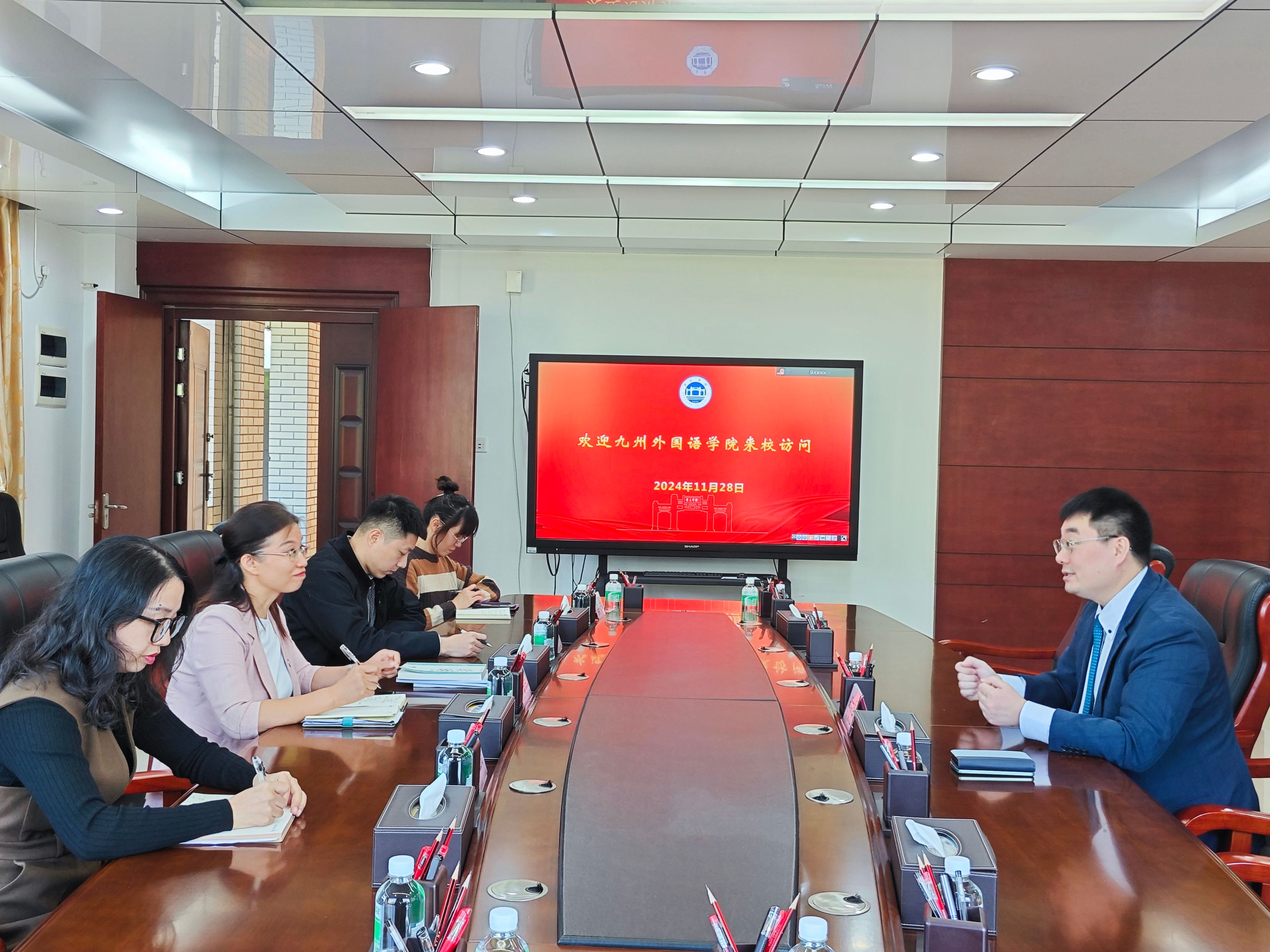 本网讯 11月28日,日本九州外国语学院副院长解友克教授莅临bat365进行回访。此次访问是对bat365领导于今年10月出访该校并签订友好合作协议的积极回应,标志着两校合作关系的进一步深化。bat365正式将九州外国语学院作为日语海外实习基地,并已启动相关项目,为学生提供宝贵的海外实习机会。