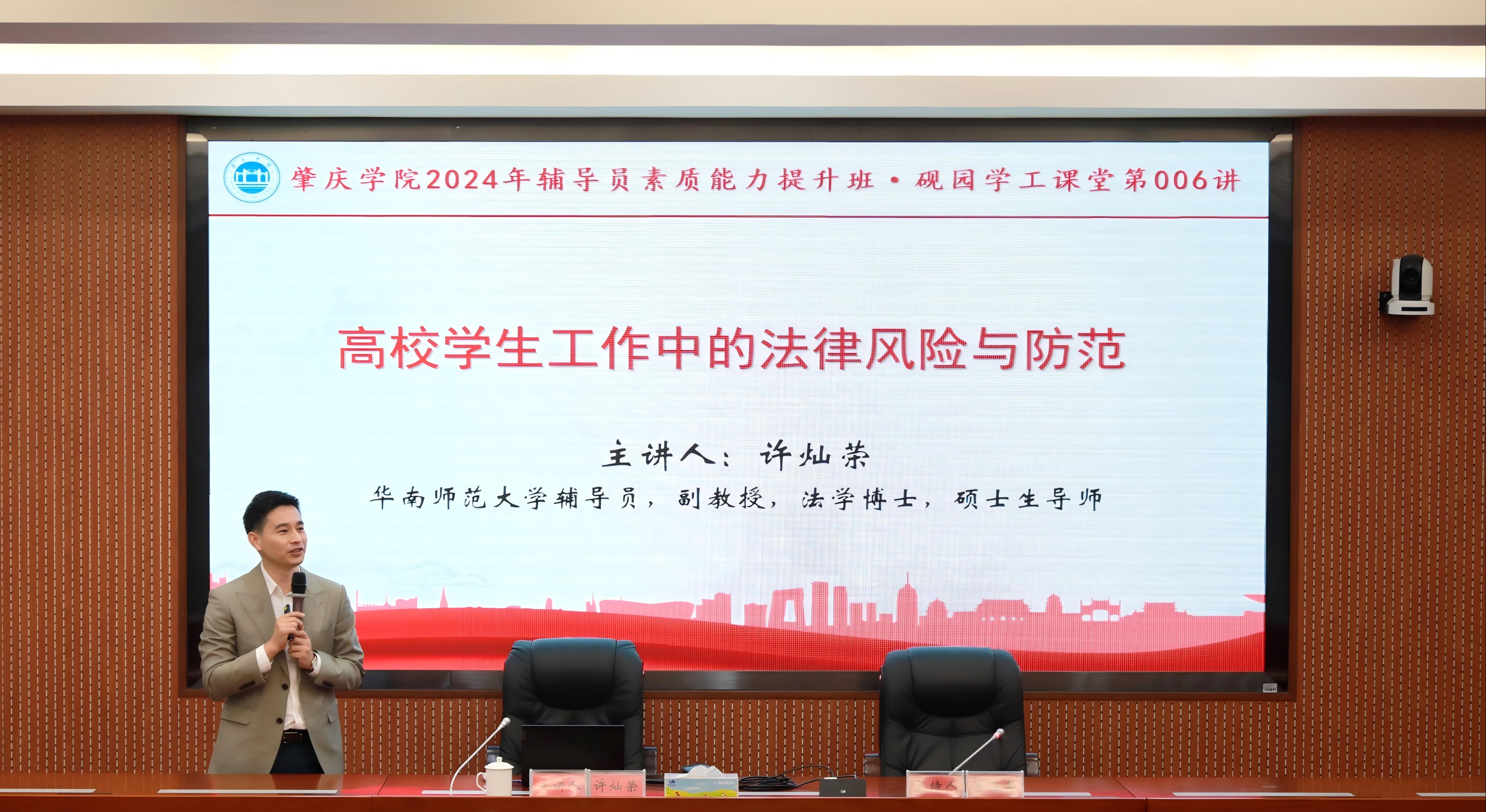 本网讯 11月26日,“bat365正版唯一官网2024年辅导员素质能力提升班”暨砚园学工课堂第六讲在行政楼第二会议室举行。本次讲座由广东省骨干辅导员工作室(校园危机应对与法治教育辅导员工作室)主持人、2021年广东省辅导员年度人物、2018年广东省第七届辅导员职业能力比赛一等奖、第七届全国辅导员素质能力大赛二等奖获得者许灿荣副教授主讲,学校党委副书记欧洪湛出席,全体学工干部参会,学生工作部(招生与就业指导中心)部长、主任陈玉华主持。