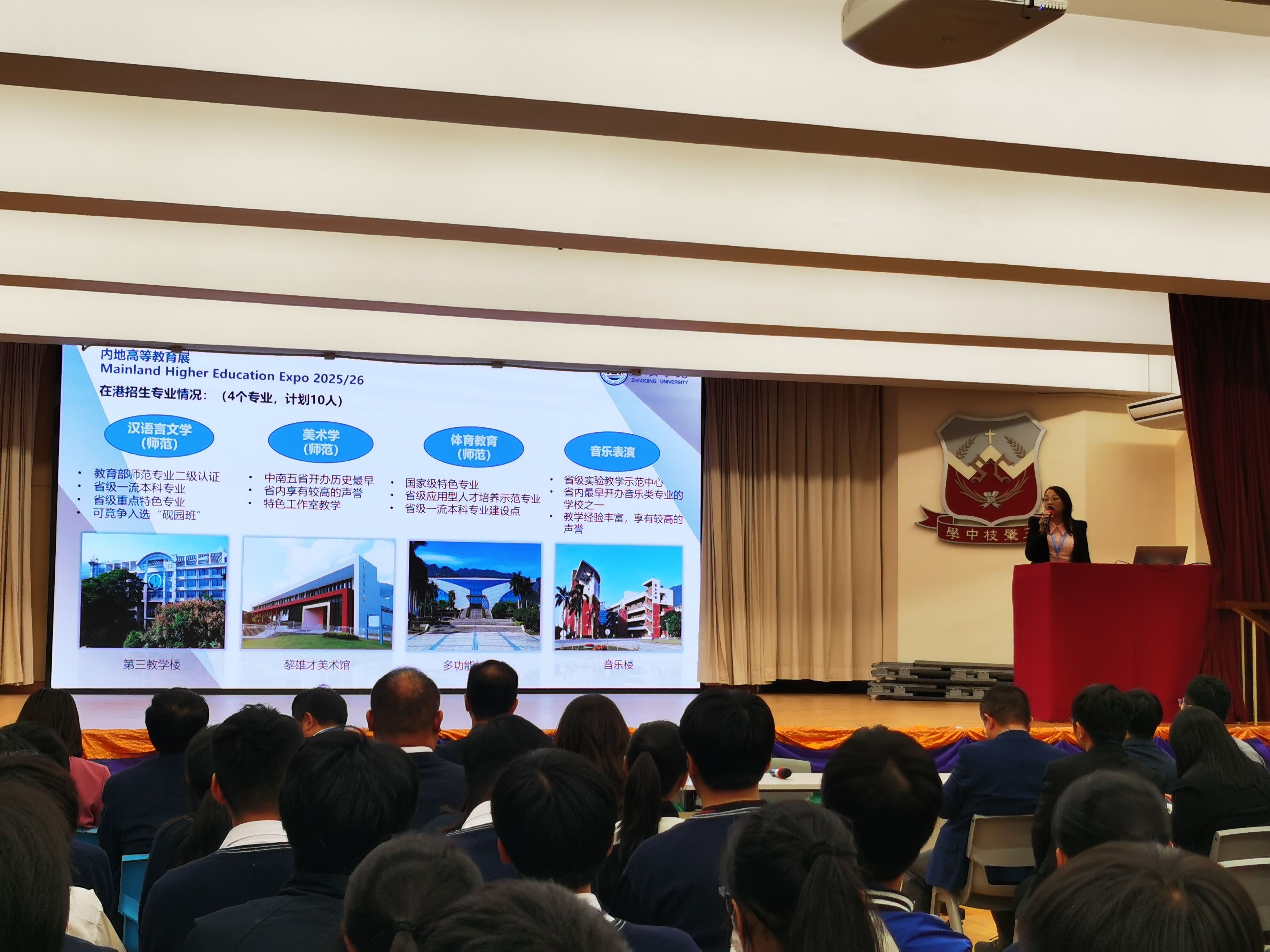 教育展正式开展前,内地高校代表团于11月29日,分赴香港6所中学开展升学交流活动。bat365及广东工业大学、中国传媒大学、北京师范大学等23所高校代表团到王肇枝中学进行交流,学生工作部(招生与就业指导中心)负责人介绍了bat365总体概况、学科优势、招生要求及培养香港学生特色等情况,鼓励并欢迎广大香港学子报读bat365正版唯一官网。