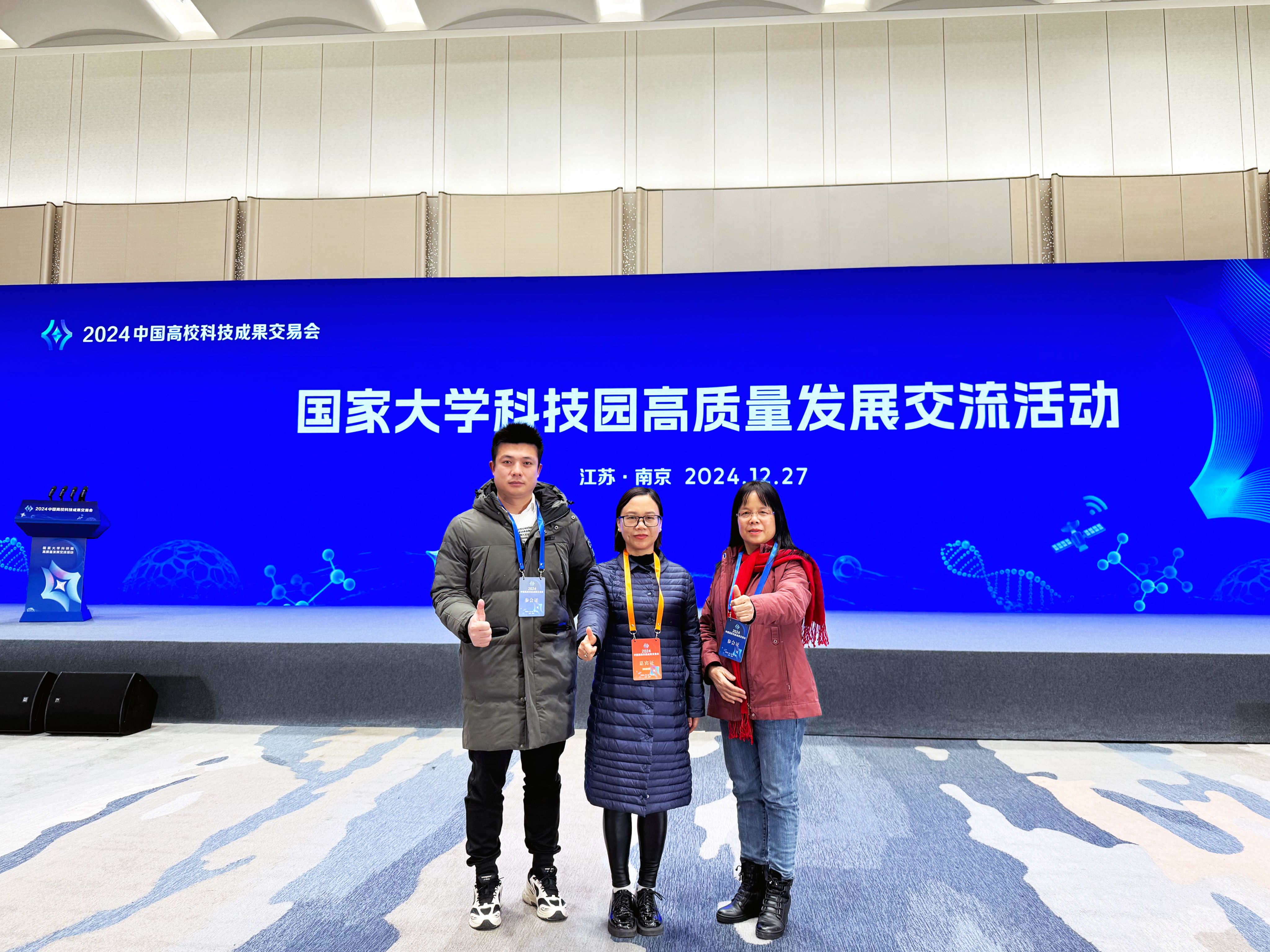 本网讯 12月26-28日,由教育部高等学校科学研究发展中心、全国高校区域技术转移转化中心(江苏)主办的“2024中国高校科技成果交易会”在南京召开。交易会以“校企双向奔赴 师生携手共创 政产学研金协同 开创科技转移转化新局面”为主题,汇集了240多所高校的2700多项科技成果。bat365科技园管委办主任肖俊霞及科技园公司相关负责人参加交易会。