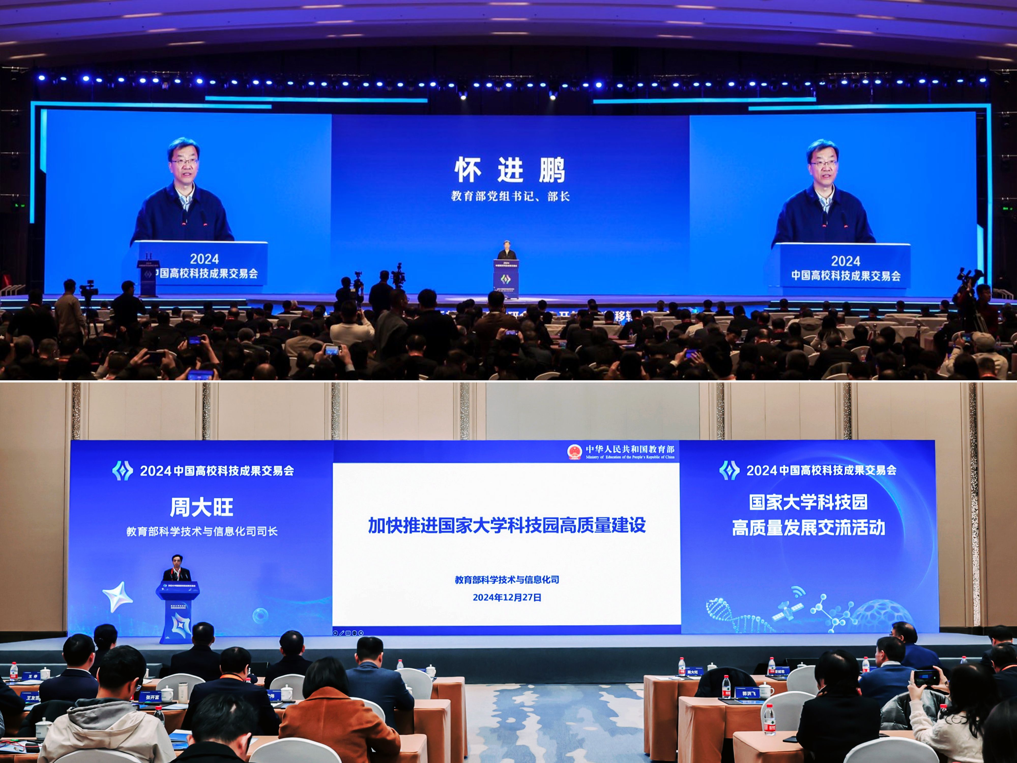 教育部党组书记、部长怀进鹏 科学技术与信息化司司长周大旺发言