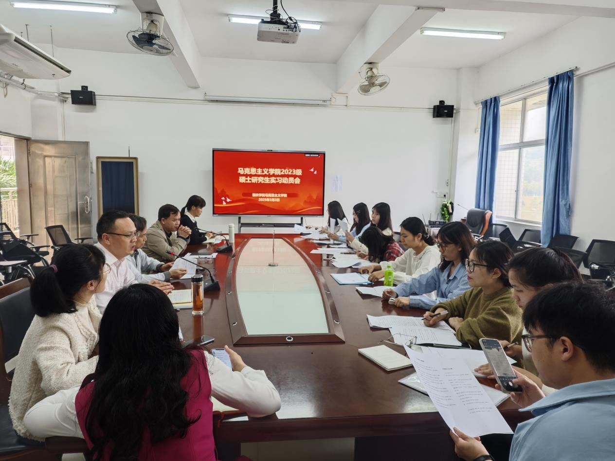 本网讯 3月3日,马克思主义学院召开2023级硕士研究生实习动员会。学院领导班子、2023级硕士研究生及导师、班主任、辅导员参加会议,副院长谢石生主持会议。