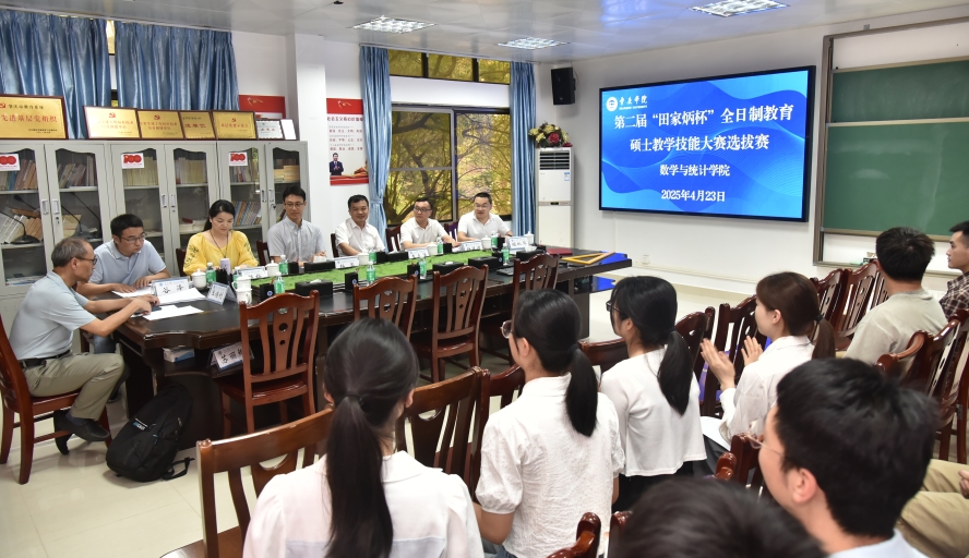 本网讯 4月23日,数学与统计学院举办第二届“田家炳杯”教育硕士教学技能大赛院内选拔赛。本次比赛旨在以赛促学、以赛促教,选拔优秀选手代表学院参加全国“田家炳杯”教育硕士教学技能大赛,展现学院教育教学成果。