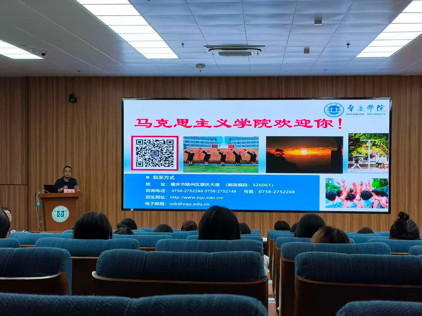 主讲人通过现场宣讲、学校招生宣传片播放、招生手册发放、互动问答等形式详细介绍学校学院情况、建设成就、所获荣誉、研究生培养特色与成效等内容。宣讲期间,马院一行分别与兄弟院校马院领导班子、教师代表就党建品牌创新、支部建设、学生就业、红色实践平台建设等工作内容进行交流。