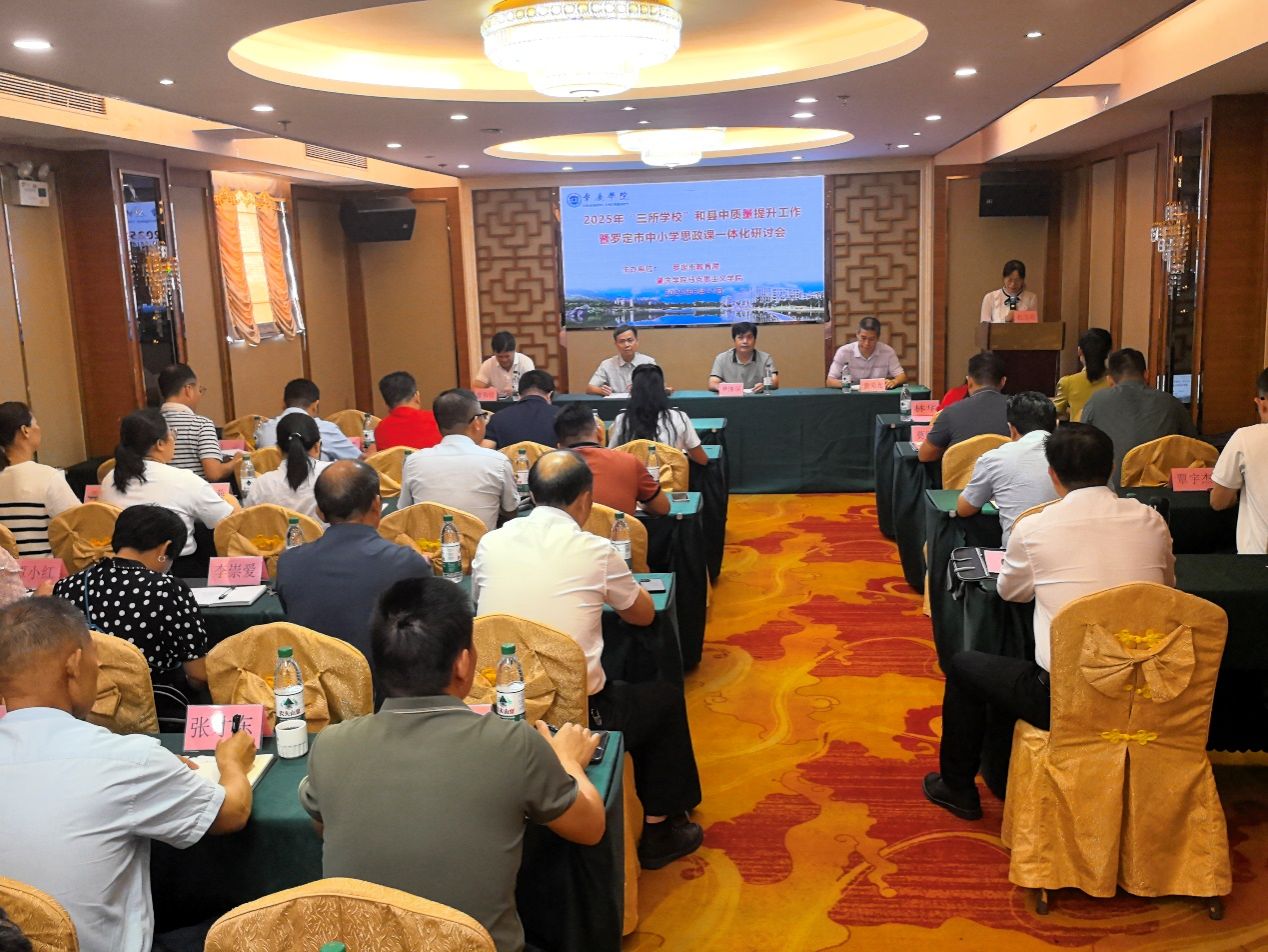 本网讯 6月21日,为做好“三所学校”和县中质量提升专项工作,马克思主义学院与罗定市教育局组织开展以“深挖地方特色文化资源,助力思政教育一体化”为主题的大中小思政教育一体化专题研讨活动。马克思主义学院领导、罗定市教育局领导、特邀专家、罗定市大中小幼各学段相关单位主管德育学校领导共40多人参会,会议由马克思主义学院党委副书记杜志欣主持。