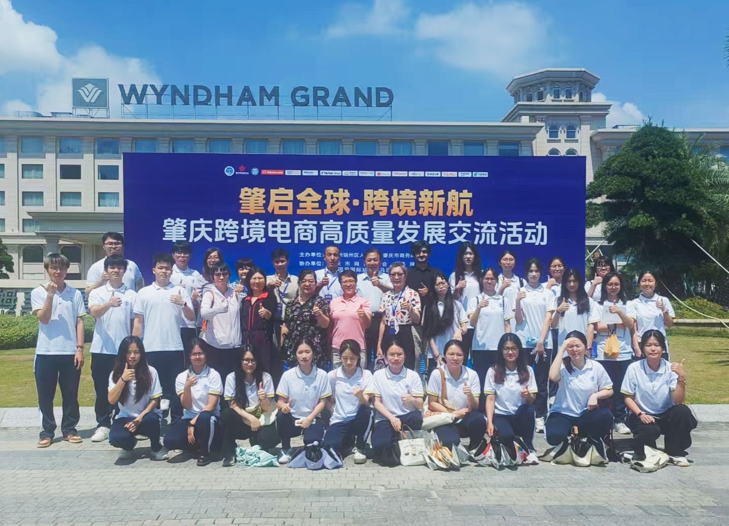 本网讯 9月4日,经济与管理学院受邀组织师生团队参加由肇庆市商务局、端州区人民政府联合主办的“肇启全球·跨境新航——肇庆跨境电商高质量发展交流活动”,并选派出4名优秀电商专业学生担任交流活动志愿者。