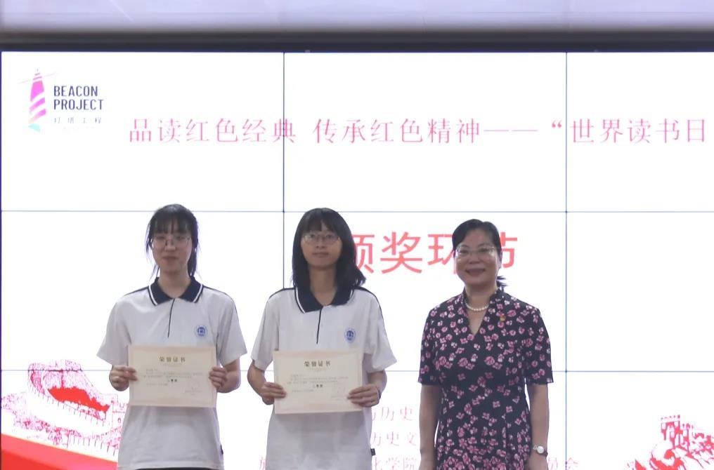 校团委副书记巫燕娜为梁思华同学颁发一等奖