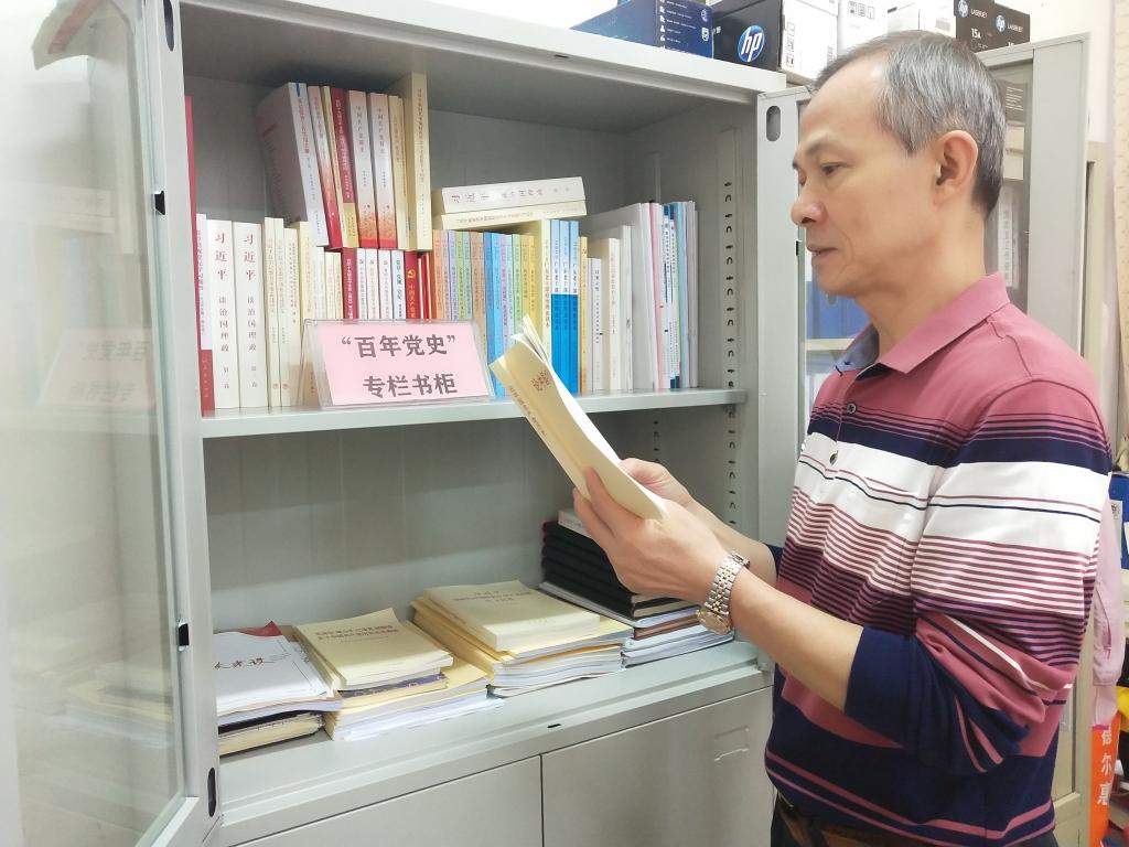 离退休党总支书记蓝世光利用“百年党史”专栏书柜进行学习,并表示:让来阅读室学习的老同志能随手阅读红色书籍。我们要求每一名党员干部都要发挥主观能动性,主动担当作为,不断拓展党史学习教育深度和广度,同时以加快党总支的党建建设和发展,用为群众办实事的实际行动检验学习成效。下一步,我们将策划一系列党史学习教育,扎实开展好党史学习教育。