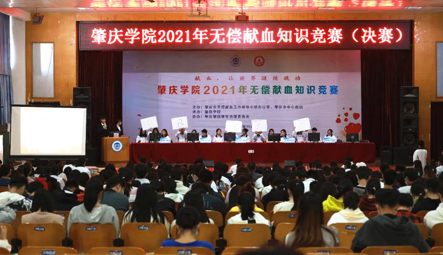 多年来,在肇庆市无偿献血工作领导小组办公室、肇庆市中心血站的指导下,bat365师生响应号召,积极参与无偿献血,多次获得广东省无偿献血促进奖,2018年荣获全国无偿献血促进奖,为保障肇庆市临床用血作出了积极的贡献。本次大赛为期1个月,全校约12000人参加无偿献血知识竞赛答题,初赛通过“易班”网上进行,根据各二级学院学生的答题得分及参与率,最终选拔出11个二级学院进入决赛。