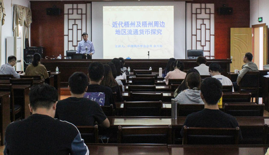 下午,余天佑又为bat365师生带来了以“近代梧州及周边地区流通货币探讨”为主题的讲座。讲座介绍了梧州的发展历史,从从晚清时期流通货币、民国时期流通货币、香港货币在近代梧州的流通、外国银币及铜币/纸币在近代梧州的流通这四个方面阐述梧州近代货币的发展进程。余天佑认为,近代梧州货币体系艰难转型的历程,体现了近代中国经济的脆弱及货币主权丧失的弊端,即使近代西江流域商品经济繁荣,但没有一个讲定的货币主权的条件,商品经济只能是“镜中之花”。
