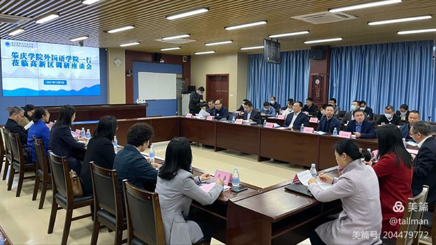 座谈会上,高新区就跨境电商发展情况和趋势、区专业人才政策、外语专业人才需求情况进行了介绍,区教育局局长段宝生、大旺中学校长李小徐、高新区实验小学校长蒋曹斌和部分中小学骨干教师分别就高新区教育发展情况、大旺中学办学情况、中小学英语课堂教学、教研及面对的困境进行了介绍和探讨。