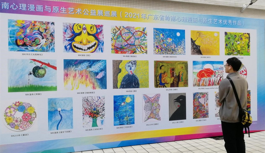 本网讯 12月1日至15日,由广东省教育厅指导、广东省心理卫生协会高校心理健康教育与咨询专业委员会主办、校党委学生工作部(处)承办的2021年岭南心理漫画与原生艺术公益展巡展在紫荆书院举行。