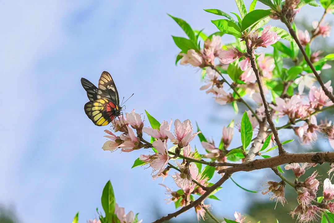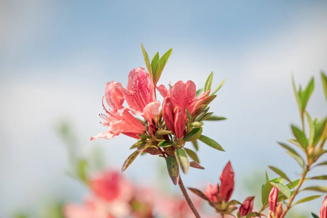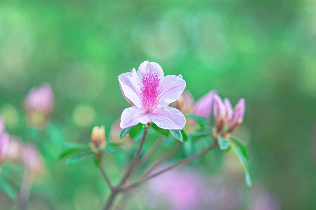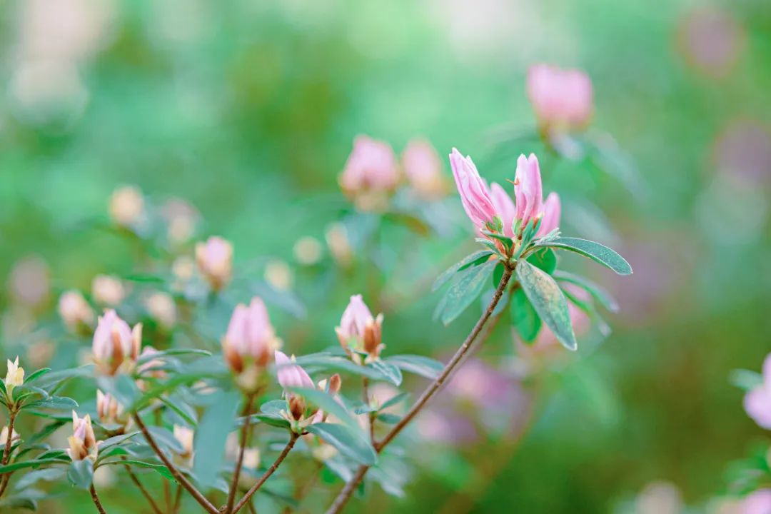 粉白色的杜鹃含苞待放,犹如盘起少女秀发的簪子,散发着甜美浪漫的气息,百花盛放,五彩缤纷,原来,春天就藏在这里。