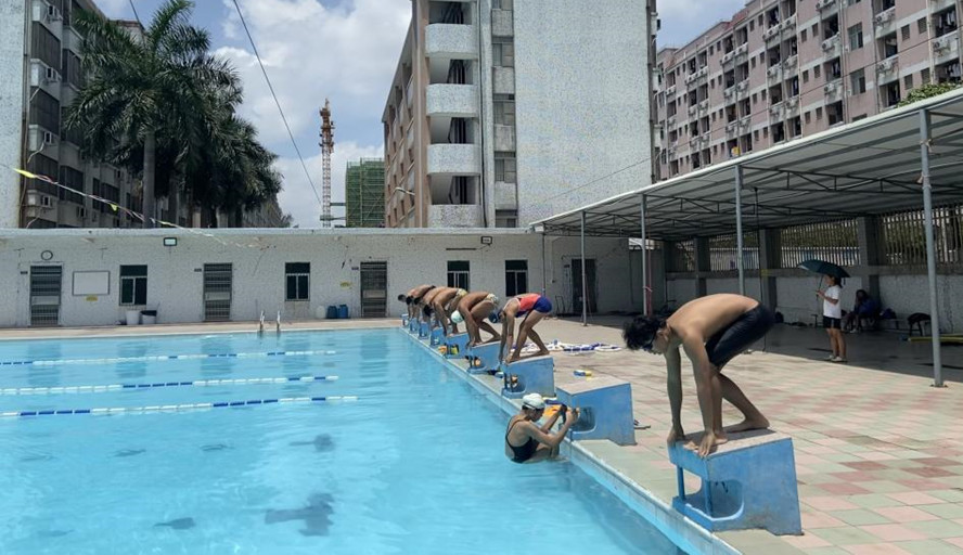 篮球馆内,运动员进行着全场投篮练习;乒乓球室里,队员们神情专注,挥舞着球拍,也挥舞着自己的梦想;游泳池中,队员们不知疲倦地划水、打腿、转身;足球场上运动员进行着体能训练,挥汗如雨;定向运动队员手拿图纸,冲过一个一个打卡点;羽毛球馆内,教练给队员分析训练出现的问题及注意事项。