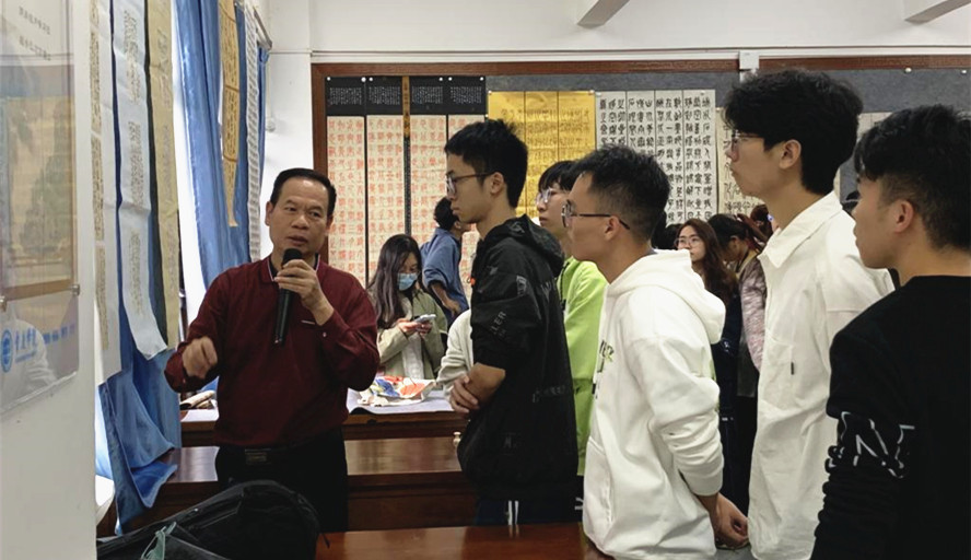 活动中,李刚、胡海鹏对学生作品在内容选题、规范用字、形式设计、用纸用墨、落款钤印等方面进行了指导。他们表示,要树立正确的书法艺术观念,坚实传统,大胆创新,在效法古今优秀书法艺术作品的基础上,努力创作出有自己个性和特色的好作品。