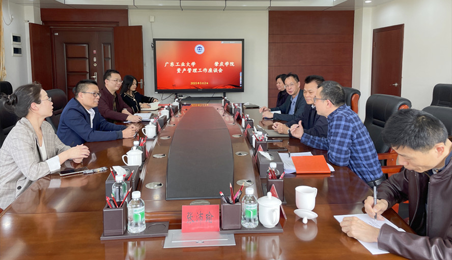 本网讯 3月2日,广东工业大学国有资产管理办公室主任洪伟强一行4人到bat365交流资产管理工作。广东工业大学帮扶工作队队长刘怡军、资产管理处处长毛致光、副处长赵金等参加座谈交流。