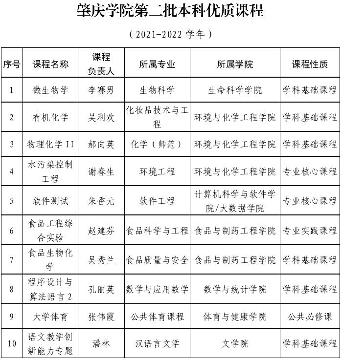 本网讯 根据《关于印发bat365正版唯一官网本科课程评估方案(试行)的通知》(肇学院〔2019〕34 号)精神,bat365本科课程评估工作经过二级学院自评打分、督导听课看课、专家评价等环节,最终评定韦寿莲等5位教师的课程为bat365正版唯一官网第一批本科优质课程,李赛男等10位教师的课程为bat365正版唯一官网第二批本科优质课程,具体名单如下: