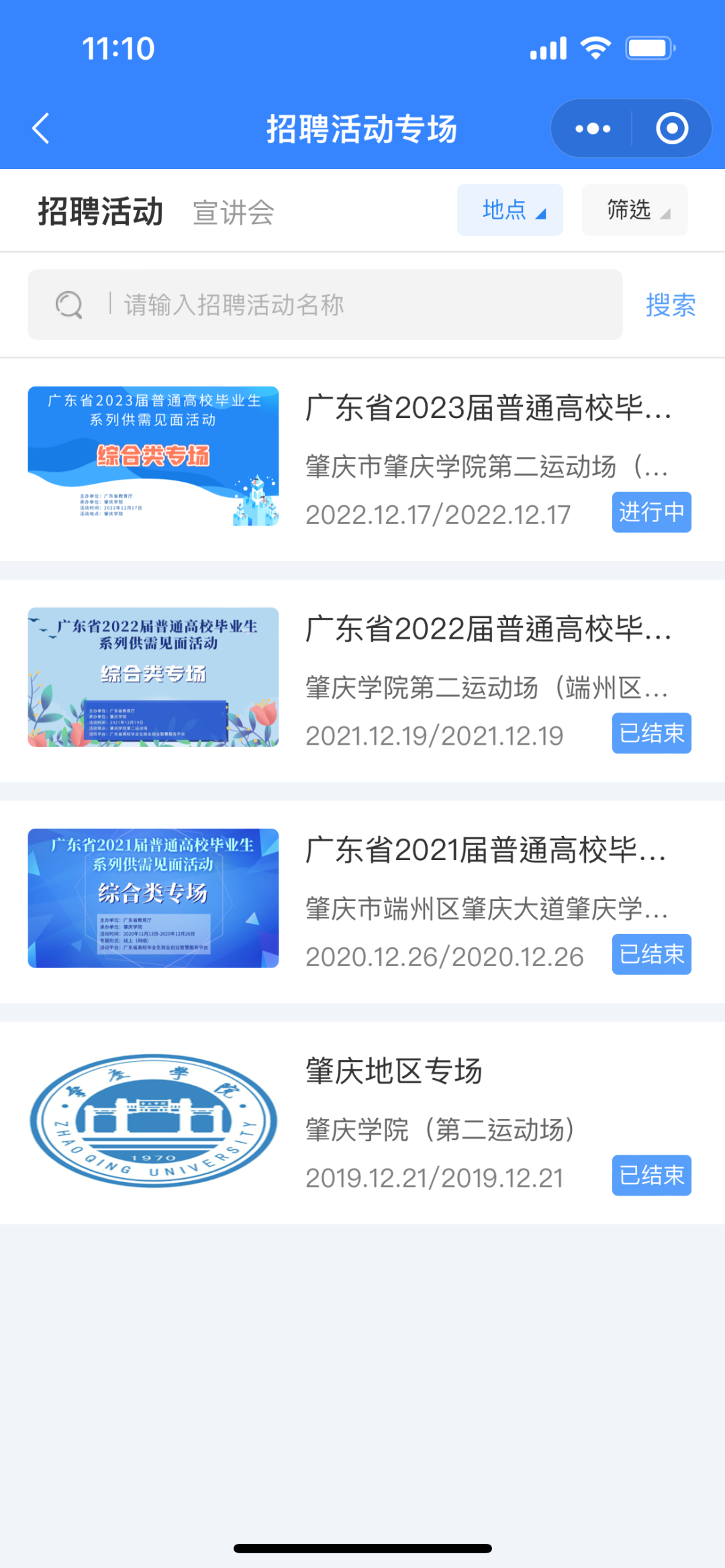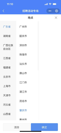 进入招聘活动专场后,点击右上方的地点,选择广东省/肇庆市,进入12月17日“bat365正版唯一官网综合类专场”;