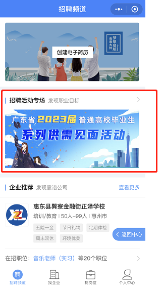 广东省2023届普通高校毕业生系列供需见面活动bat365正版唯一官网综合类专场线上招聘会于12月17日在广东学生就业创业智慧服务平台如期举行,参会企业超百家(陆续更新中),参会方式见下文,请同学们登陆“广东大学生就业创业”微信小程序积极投递简历,积极参与线上招聘活动。
