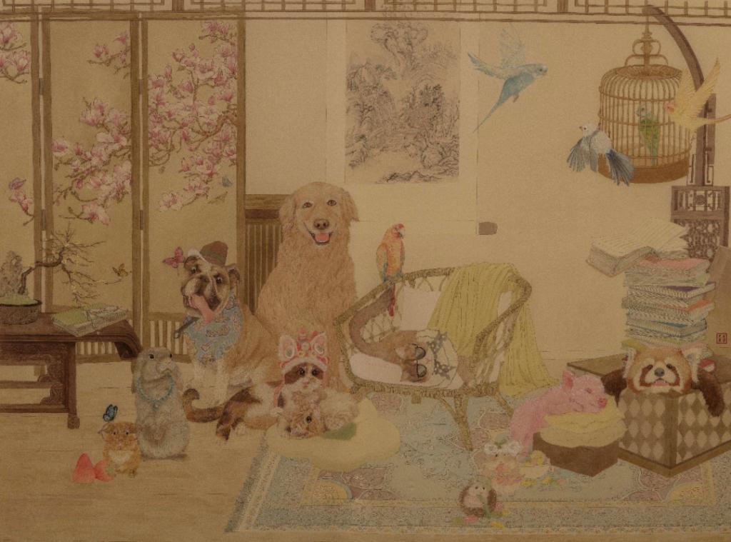 《毛孩子》 国画工笔  黄幸儿(指导教师:石景瑞)