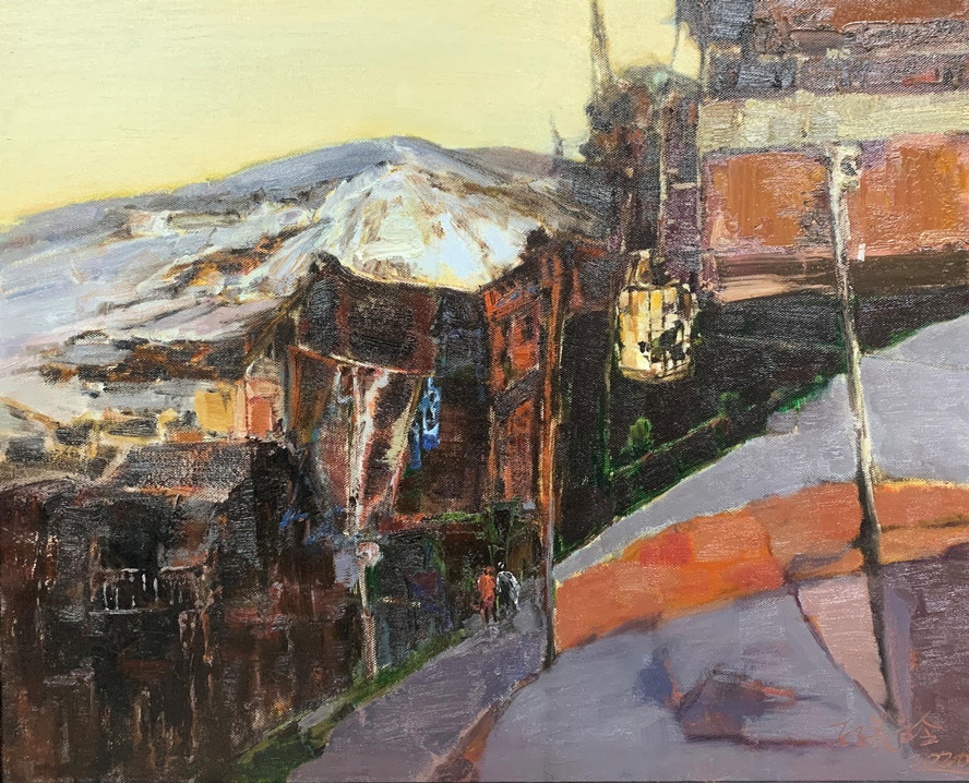 吴碧霞《西北乡村新貌》 油画 2018年 80X100CM  山西右玉