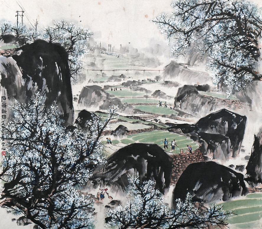 林丰俗与肇庆,以及肇庆之于林丰俗,是本次特展的宗旨所在。重溯这段历史,既是美术史研究的需要,更是为了进一步传承和弘扬他的艺术精神。按照李伟铭的解读,《大地回春》“致力于表现自然界季节转换的倾向,可以视为在《石谷新田》和《公社假日》中那种敏锐的直觉的进一步发展。”我赞同这样有见地的判断,《大地回春》确实可视为林丰俗肇庆时期创作的一个高点。这里借林丰俗作品标题,再厘出“云山叠翠”、“石谷新田”、“星湖春晓”、“篱竹含雨”、“大地回春”五大版块作展示,重点落在林丰俗与肇庆有关联,尤其是肇庆时期创作的作品。配合相关的图文资料、复原当年部分场景,以期立体、真实地呈现林丰俗肇庆18年间的艺术行履。