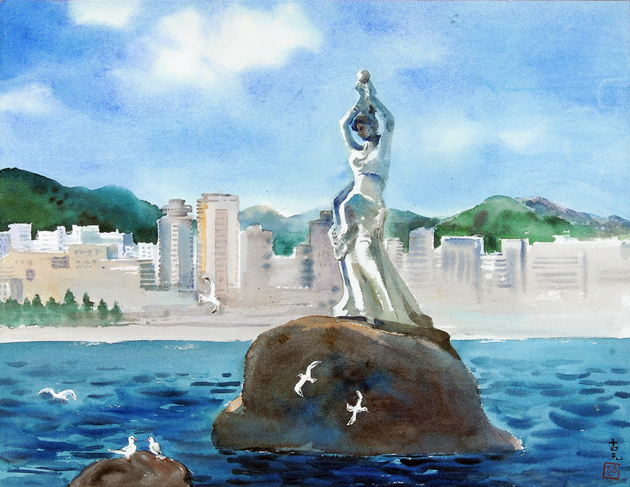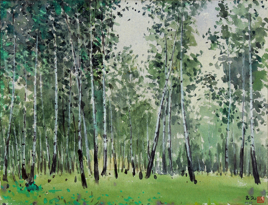 古元1919年出生于珠海市那洲村一个普通归侨之家。1938年古元满怀抗日救国的激情,奔向了革命圣地延安。在延安,古元亲自聆听了毛泽东《在延安文艺座谈会上的讲话》,并将“讲话”精神作为自己艺术创作的唯一准则,创作了大量贴近人民,脍炙人口的作品。古元不仅是一位版画大师,还是一位水彩画大师。古元的绘画生涯起步于水彩画,他青少年时代创作的水彩画已显露出较高的绘画天赋。在延安时期,因宣传需要,加之没有创作水彩画的物质条件,才转而搞版画创作。著名画家徐悲鸿对古元的评价很高,称其为“中国艺术界一卓绝之天才,中国新版画界一巨星”。古元创作以风景为题材的水彩画构图别致,清新淡雅,画面诗意盎然,极具艺术魅力,表现出对祖国壮丽的河山以及生活在这块土地上的劳动人民由衷的热爱。