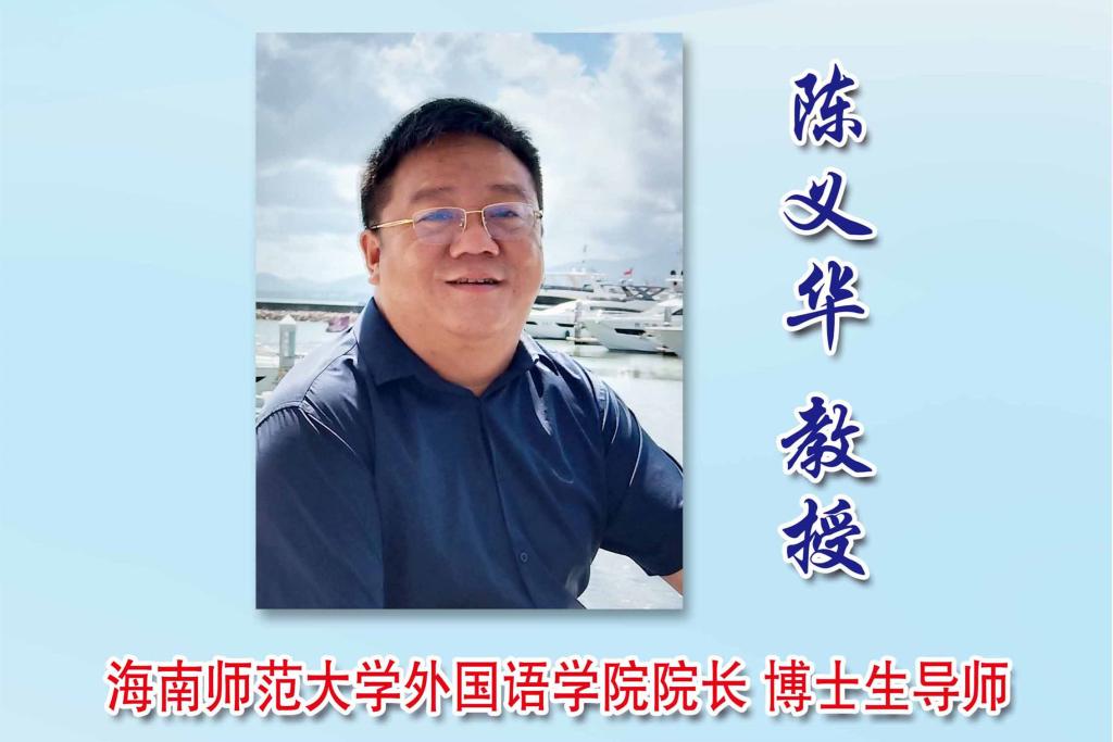 陈义华教授,博士生导师,国家民委南盟国家研究中心主任、海南师范大学外国语学院院长、区域国别研究院院长、海南省领军人才、海南省外语类本科教学指导委员会副主任、海南比较文学学会副会长、中国语言教育研究会常务理事、中国语言服务教育联盟常务理事、国家社科基金通讯评审与成果鉴定专家。