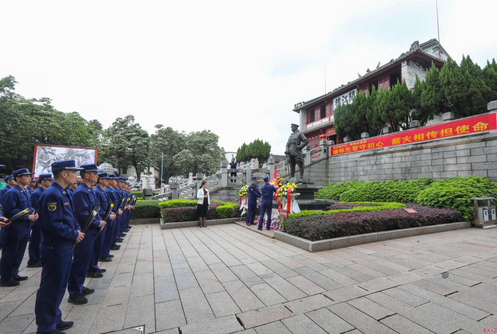 4月4日,肇庆端州区消防救援大队来到叶挺独立团团部旧址(阅江楼)缅怀革命先烈。 西江日报记者 梁小明 摄