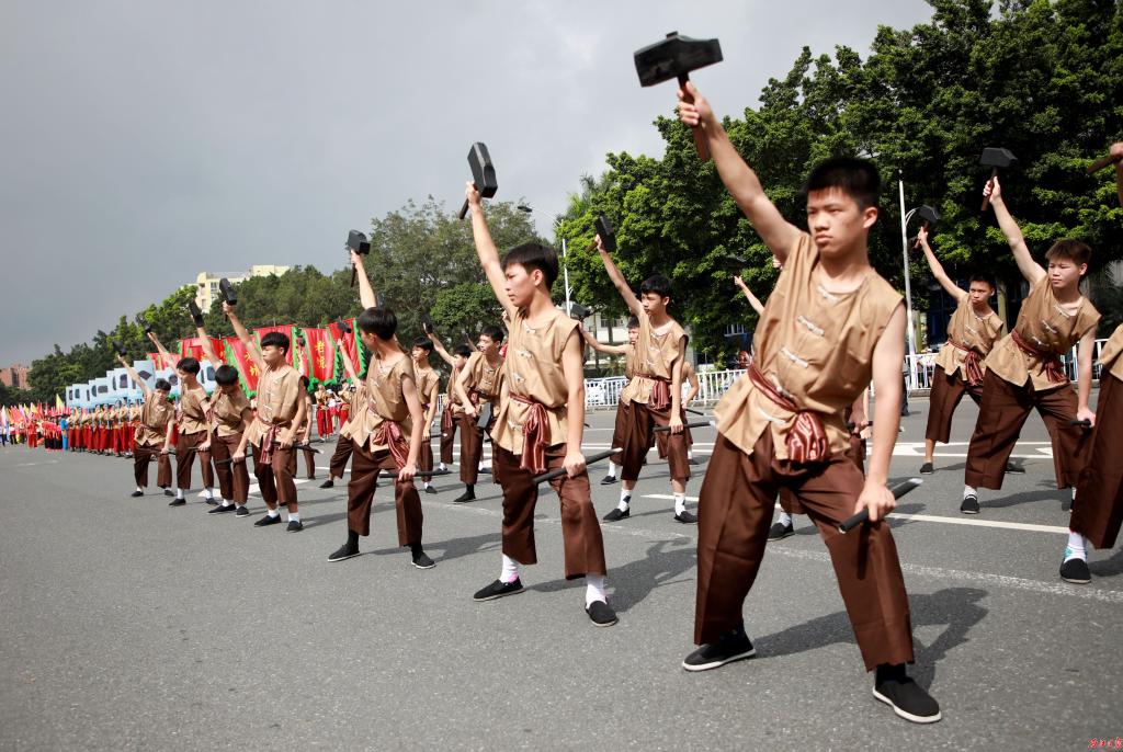 特色非遗巡游中,由全市制砚大师、采石工匠代表、表演队伍等约500人组成的巡游队伍在端砚文化村广场集中出发。 西江日报记者 曹笑 摄