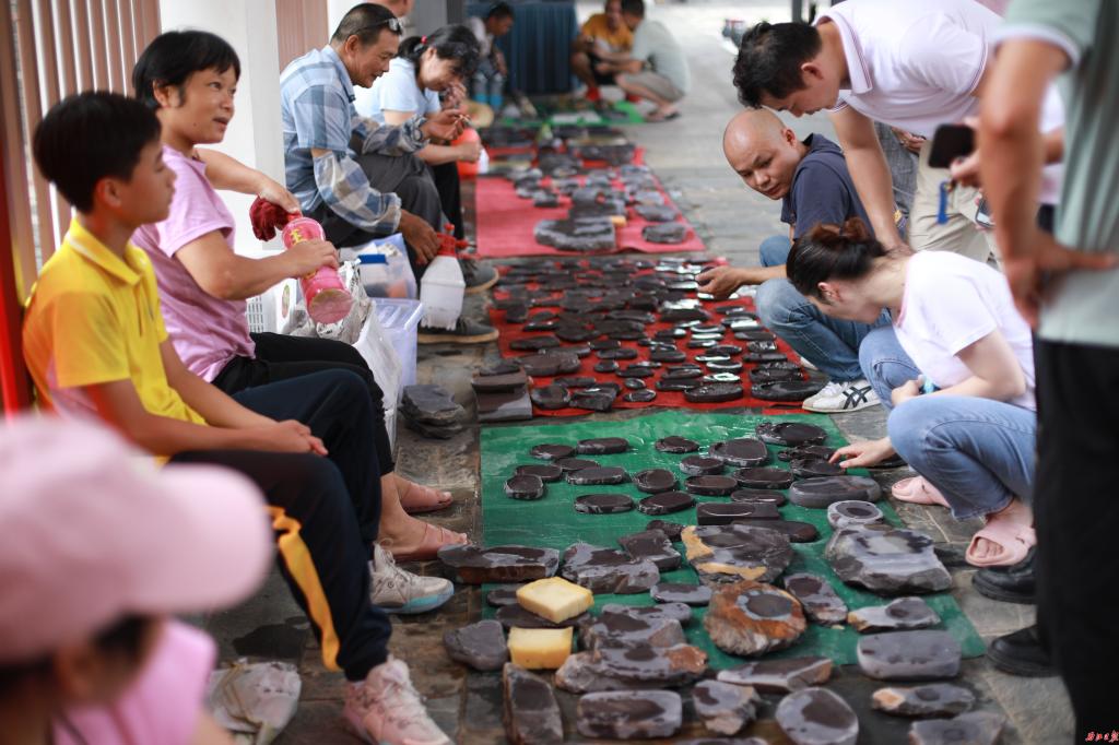 “在水一方”文化创意集市端砚原石交易。西江日报记者 刘春林 摄