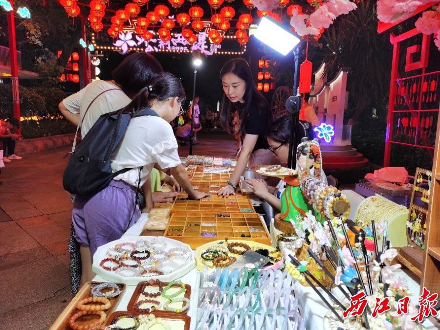 “为打造一条集‘吃购娱游’于一体的多元形态夜市街,星湖紫荆西堤文创街区特别设置了饮食摊点、文化体验、互动游玩等区域。”肇庆市七星旅游发展有限公司副总经理谢从冠介绍,除了饮食和文化体验类摊点,该街区还拓展了糖画、传统饰品等手工制作区,以及儿童游乐区,并于每个节假日或周末,举办传统民俗巡游、汉服秀、旗袍秀等活动,赢得游客的关注和好评。