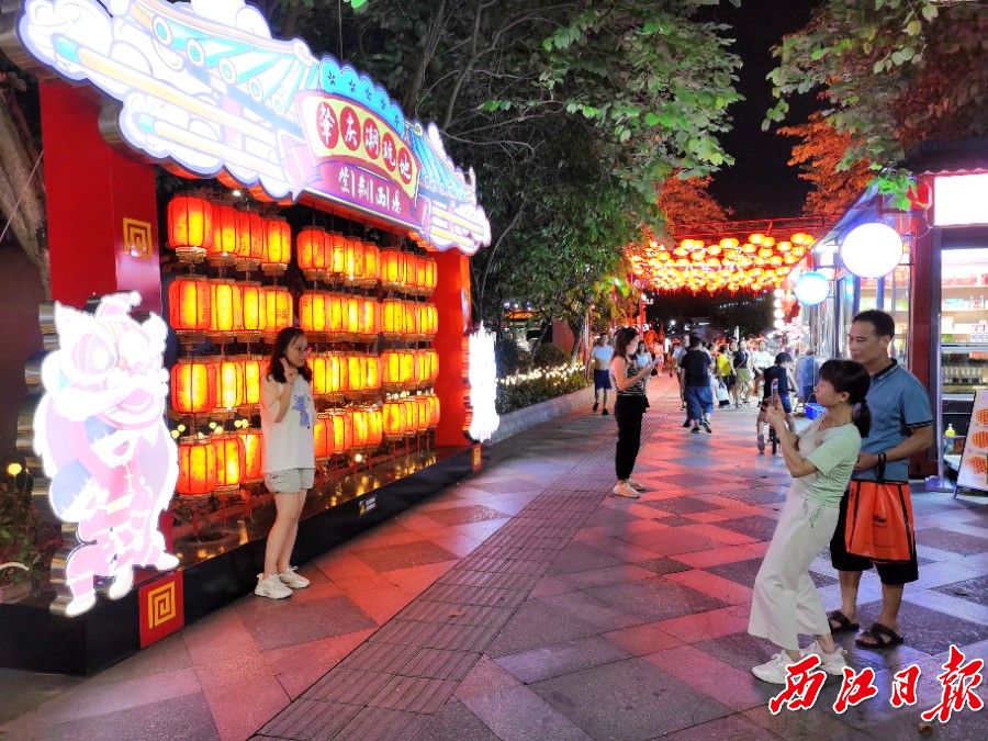 星湖紫荆西堤文创街区“灯笼文化点”吸引市民游客“打卡”。西江日报记者 戴福钿 摄