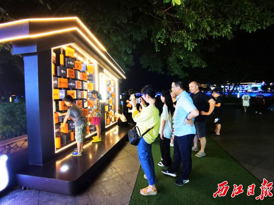 星湖紫荆西堤文创街区肇庆方言墙吸引市民游客体验。西江日报记者 戴福钿 摄