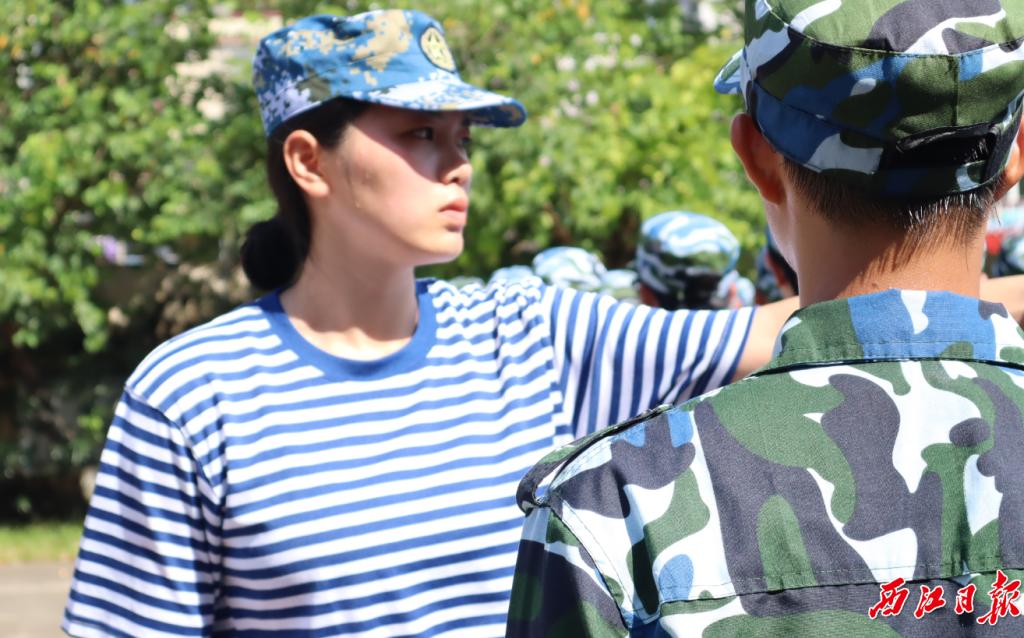 马璇华是一名退役女兵,原服役于重庆某部队。今年学校新生军训,她又主动报名参与其中,不仅是军训教官,还是集训队队长。