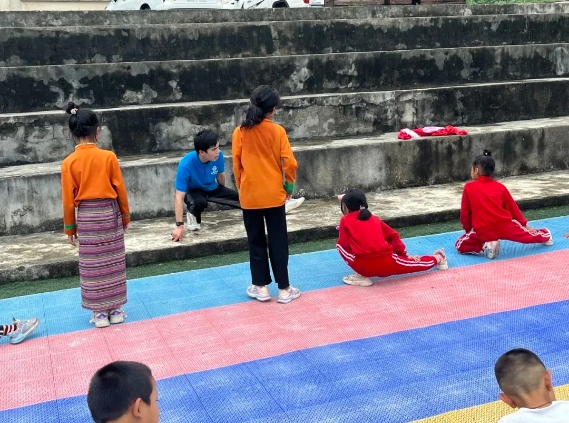 (支教队员植星宇在上体育课)