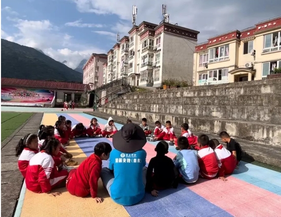 支教队员杨享带领学生走出教室,感受自然与音乐的融合。操场上的“小小音乐家”们展示着属于他们的艺术风采。