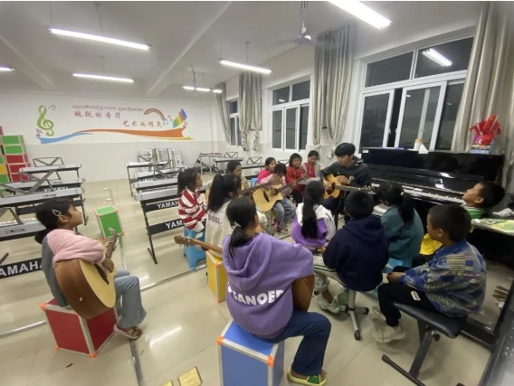 (支教队员林逸泓在开展吉他兴趣班)