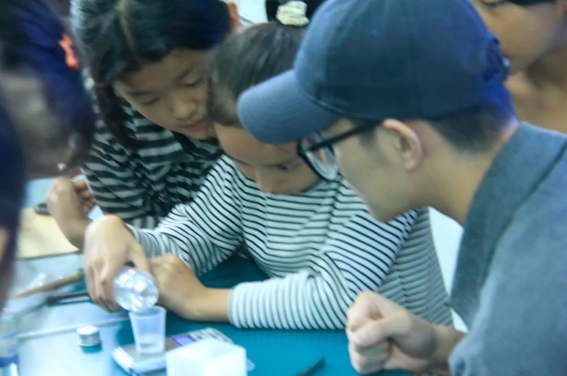 手工课上,支教队员钟维健带领学生到操场就地取材,收集手工材料,亲近大自然。他示范操作过程,引导学生分组调配胶水、固定花草昆虫等,让学生从不懂到做出优秀作品,很好地提高了学生的动手实践能力。