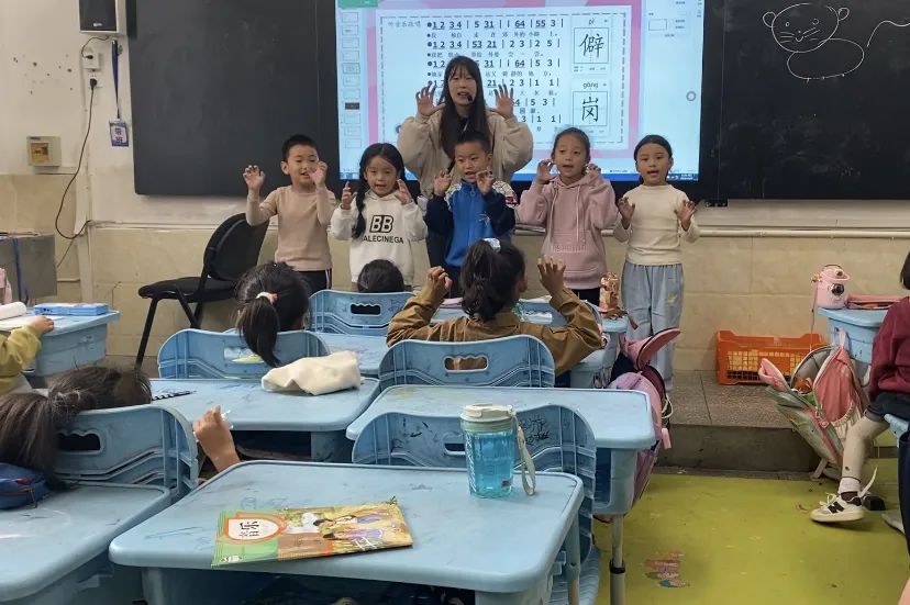 支教队员邓子欣在课堂上通过《小红帽》这首歌,和学生们用创编舞蹈动作的方式来展现音乐课堂,培养他们丰富的想象力,充分发挥学生的主观能动性。