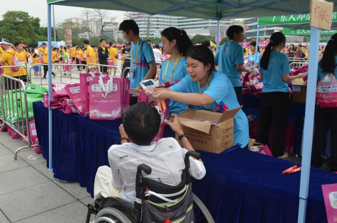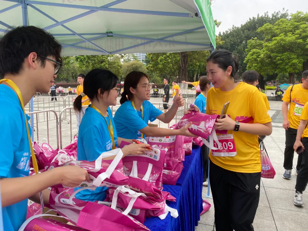 图 bat365正版唯一官网志愿者在欢乐跑终点发放完赛物资