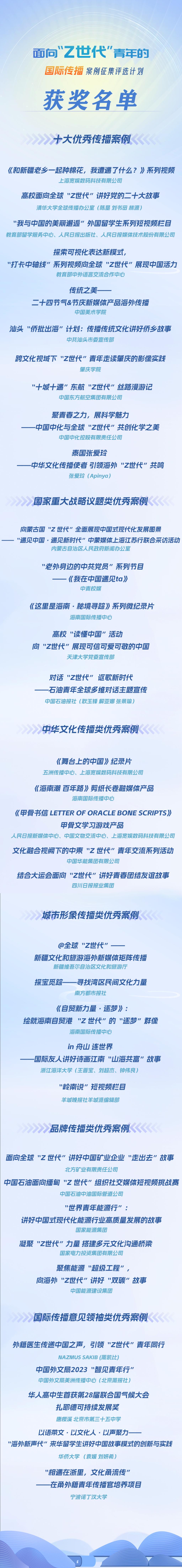 环球传播研习社 | “面向‘Z世代’青年的国际传播案例征集评选计划”评审结果揭晓