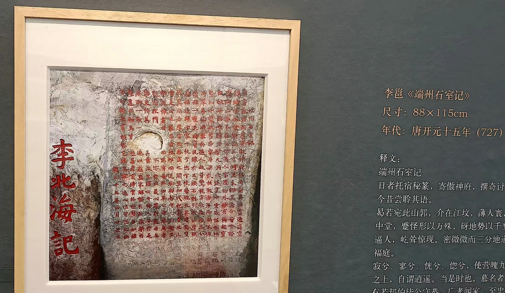 本次展览肇庆美术馆从肇庆星湖文物管理所收藏的400余件石刻拓片中精选90多件,按照石刻内容划分为“诗赋文词”“刻辞题字”“游览题名”“史料遗珍”四个展览单元,并展出一批珍贵的史料文献、影像资料。展览不仅关注摩崖石刻本身所具有的书法史和金石学属性,更是将七星岩石刻放置于更为宽广的历史时空中加以考察,为观众呈现这批珍贵的历史遗存极高的艺术与历史价值。