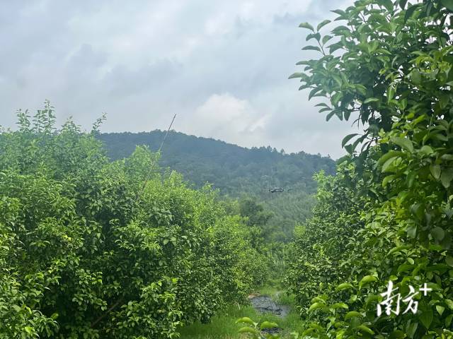 无人机在砂糖橘果园里拍摄。