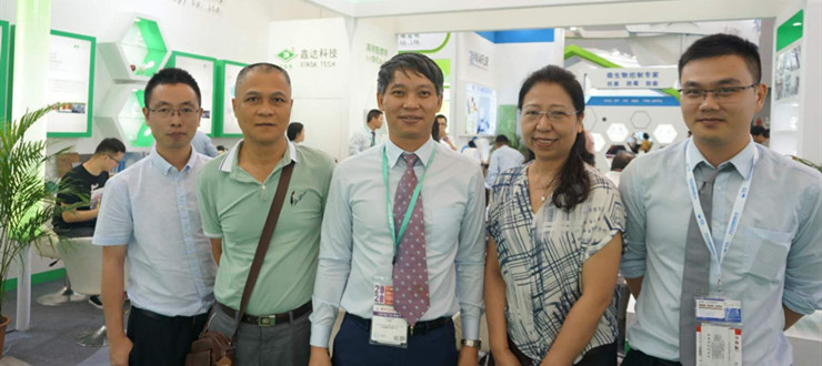 bat365正版唯一官网的“科技特派员”陈庆华(左二)在合作企业中进行交流(来源:bat365正版唯一官网新闻中心)