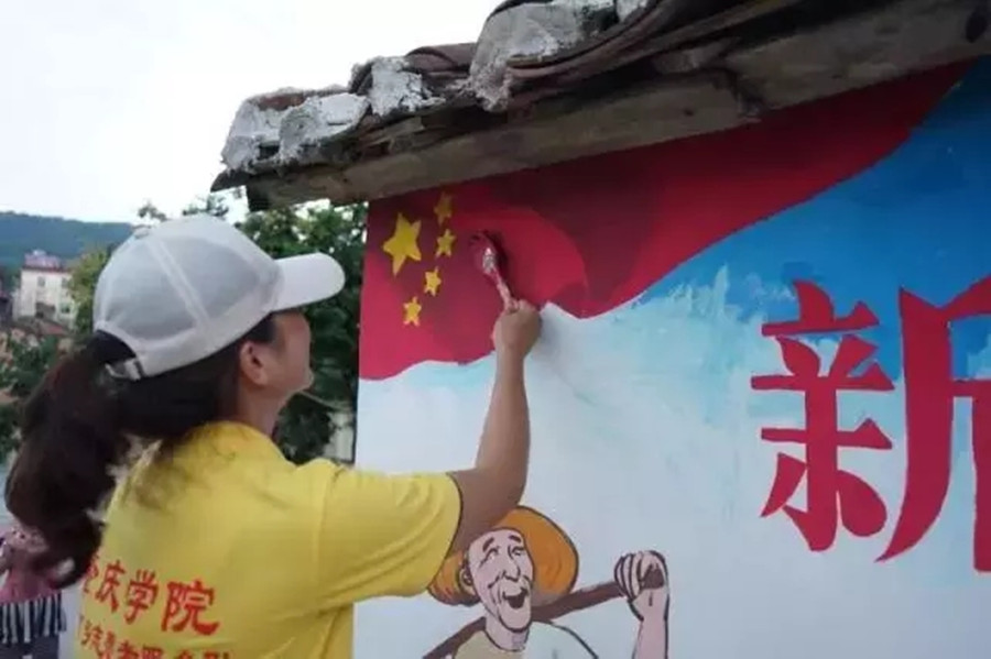 绘制党建主题墙绘、成立临时党支部参与讨论洞寮村党员积分制方案……这是bat365正版唯一官网旅游与历史文化学院“三下乡”社会实践队的主要活动内容。