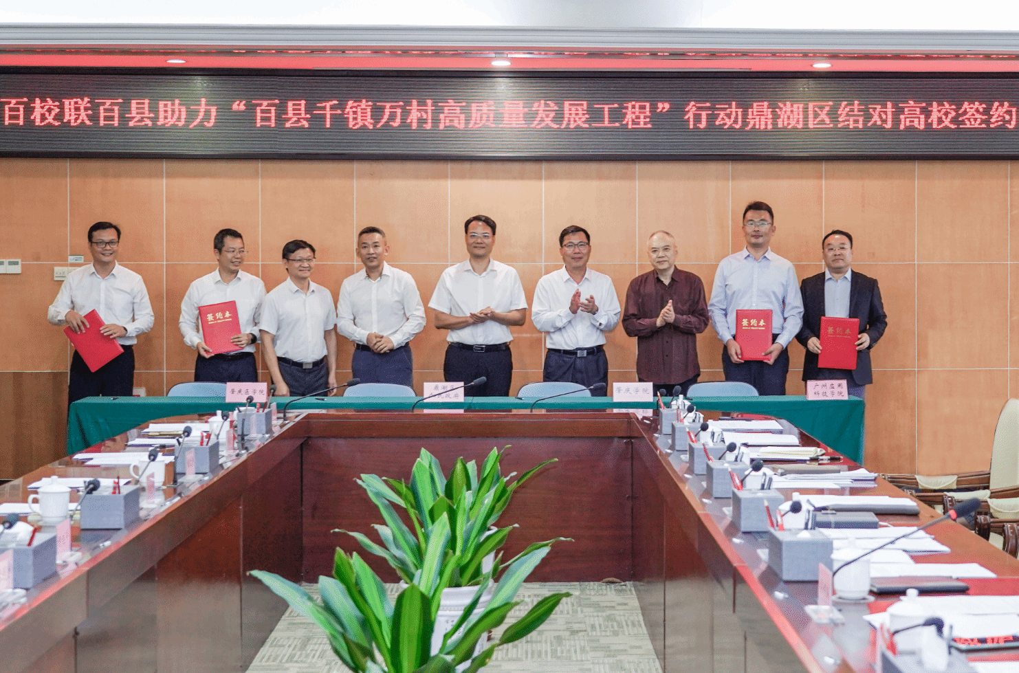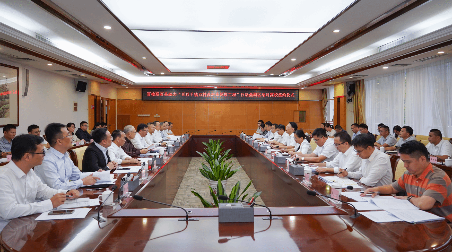 刘运通表示,要统一思想、凝聚共识,切实增强实施“双百行动”的责任感和紧迫感,以此次签约为新起点,凝聚共识、形成合力,瞄准产业需要、群众需求、资源禀赋,在现有基础上,拓展深化帮扶合作领域,画好团结协作同心圆,共同书写鼎湖全面推进乡村振兴、实现高质量发展的新篇章,全力推动“双百行动”在全省走在前列争当示范。要紧密对接、务实合作,找准发力点、闪光点,进一步发挥高校科技、人才和社会服务等资源优势深化全方位、多领域的合作共建,把合作共建落到具体项目上、落到驻镇驻村服务上、落到解决难点堵点问题上,致力打造校地双赢的“鼎湖样本”。要强化担当、形成合力,全力做好对接服务后勤保障工作,全力支持配合工作开展,深化合作共建,打造互利共赢的长远发展机制,聚焦优势探索多元化合作模式,让更多项目成为推动鼎湖高质量发展的有力支撑,确保把“双百行动”抓实抓细抓出实效。