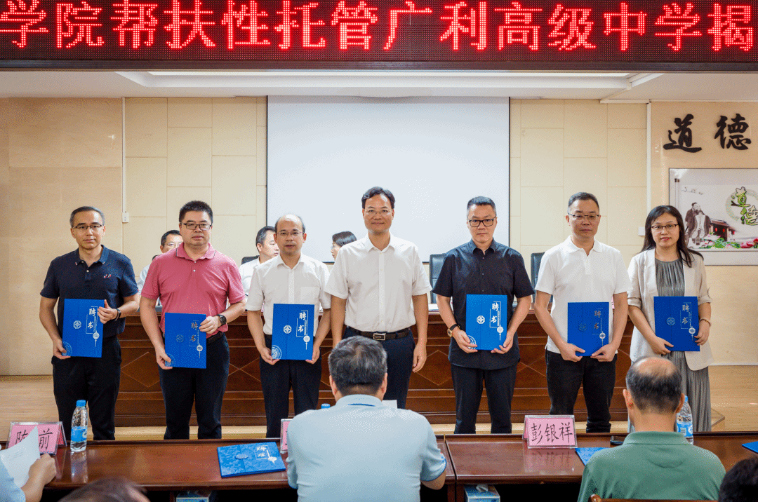7月18日,鼎湖区举办bat365正版唯一官网帮扶性托管广利高级中学揭牌仪式,广利高级中学正式加挂“bat365正版唯一官网广利实验中学”校牌。此次合作是bat365正版唯一官网和鼎湖区人民政府积极响应国家“县中托管帮扶工程”和广东省“双百行动”战略部署的重要举措,标志着校地协同推进优质教育资源共享进入新阶段。bat365正版唯一官网党委副书记、校长李琴,副校长肖起清,鼎湖区委书记、肇庆新区党工委书记刘运通,基础教育指导专家彭银祥、陈淑玲、彭司先等出席活动。